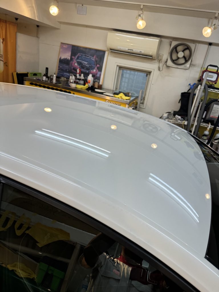 軽めに研磨、ウィンドの油膜除去とフッ素コート、ボディーは3層のガラスコーティングSPG2.1コート。